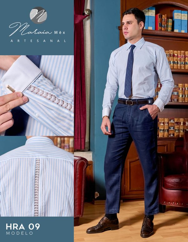 Camisa de caballero con deshilado hecho a mano. Material de algodón